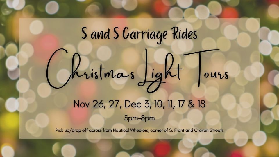 Join S and S Carriage Rides for a festive Christmas Light Tour in Downtown New Bern.